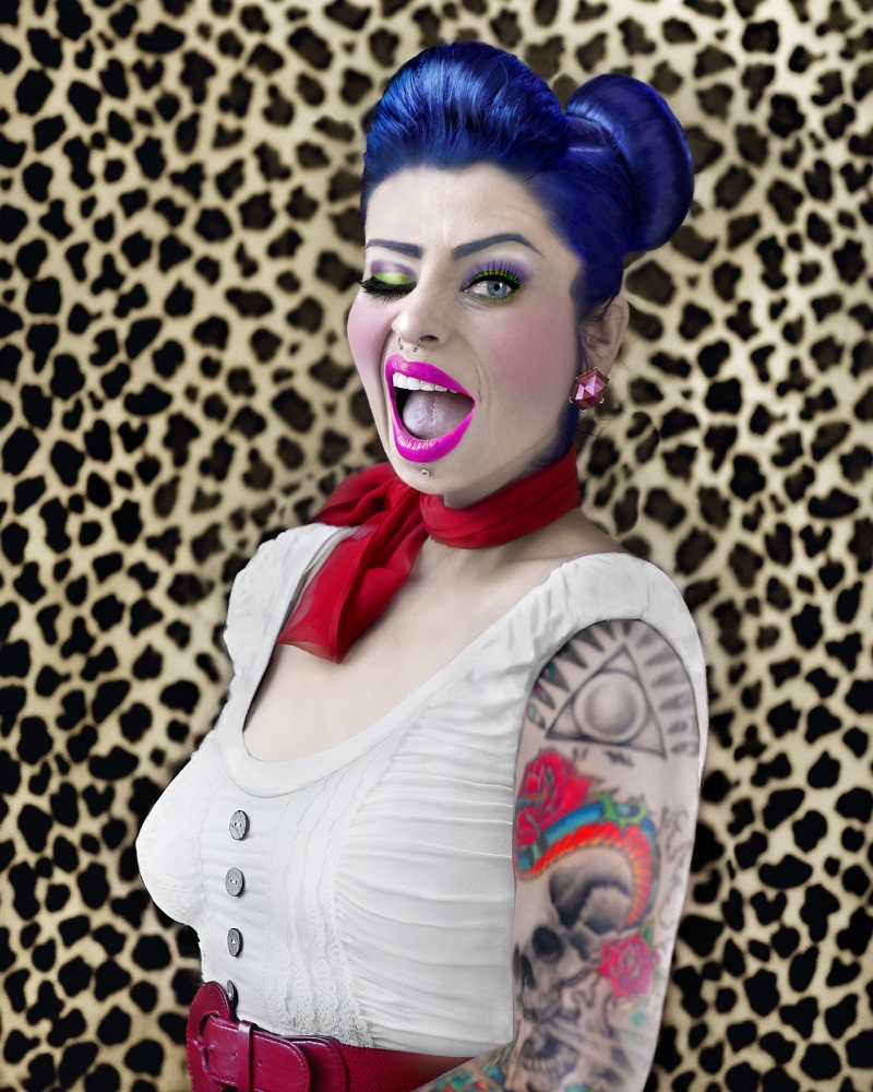 Rocio de Alba shares, “In my early twenties my pious old fashion Hispanic parents divorced. Years later they confessed their most devoted accomplishments were sparing us the un-pleasantries associated with step-parents. Yet almost immediately my mother began a relationship with a man… and my father courted many women. Baffled, I witnessed my strict marital ethics unravel through the adults that enforced them and seamlessly integrated into what is referred to as the “modern family”.” In these self-portraits, de Alba uses props and minor Photoshop edits to transform herself into these numerous characters which “[focus] on the gamut of the contemporary mother archetype. Rocio herself has undergone broken relationships and separated children. She says, “As the evolution of a progressive family dynamic ensued, it revolutionized societal doctrines that enforced what mothers should look like and instead made mothers reinvent themselves unconventionally and with disregard to social biases.”