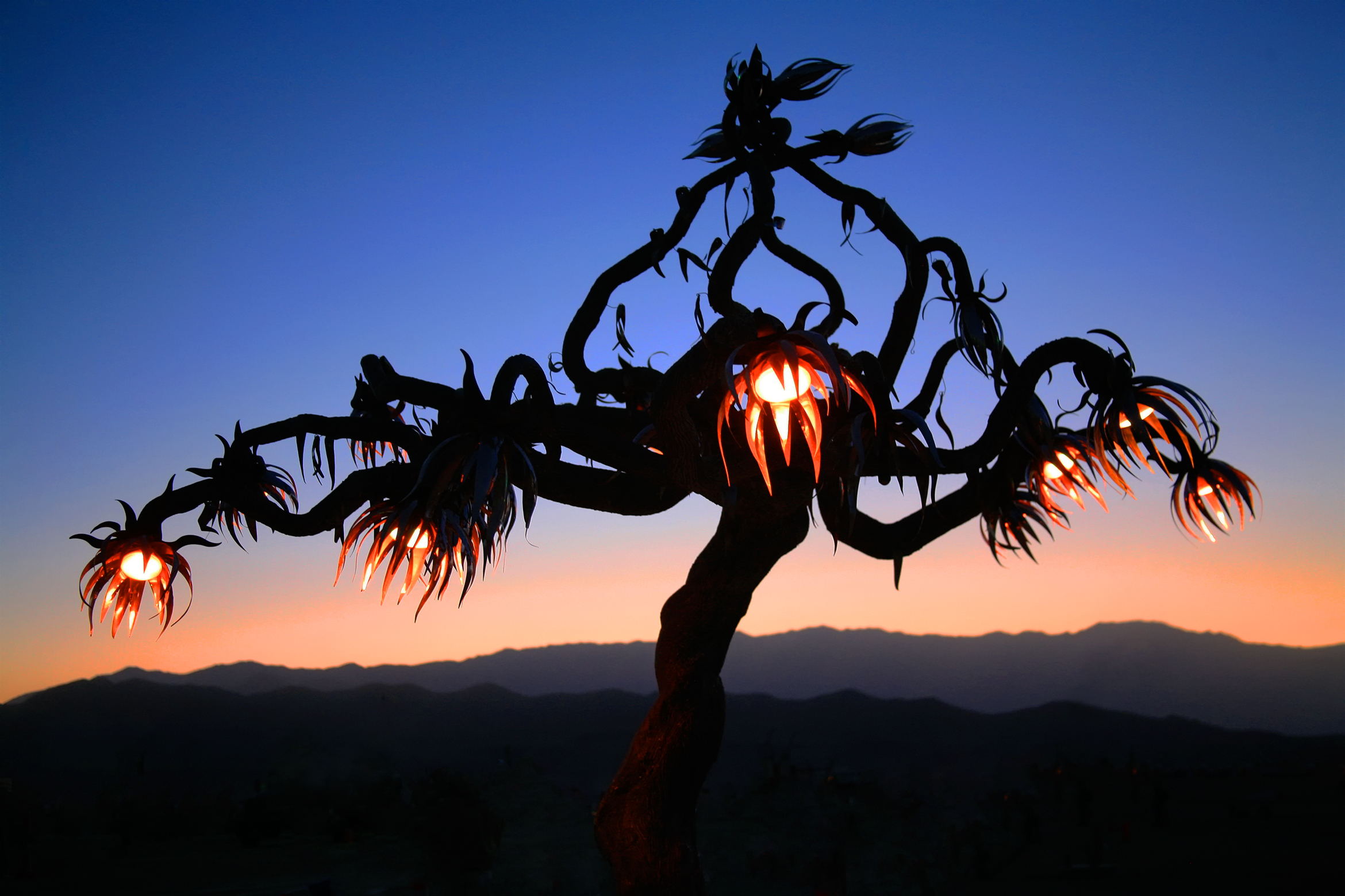 - © Erica Martin, “Tree of Lights at Sunset, Black Rock City, NV”