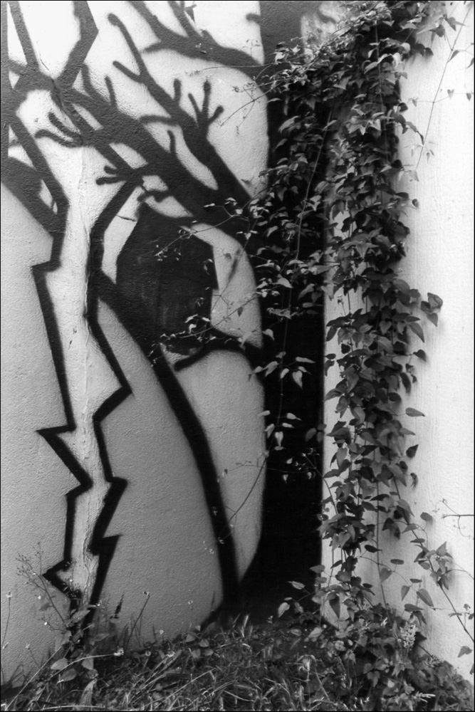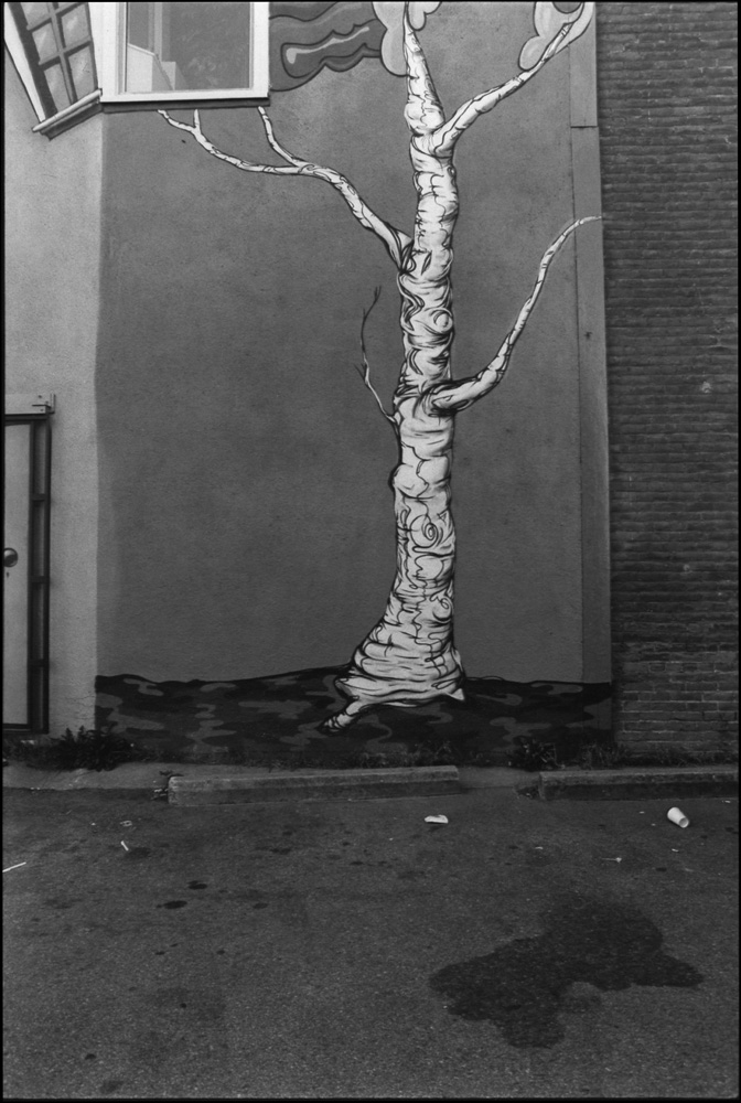 In an urban habitat trees may survive and even thrive. They can spring from cracks in concrete, reaching up to light and life. In curious combinations, renderings of trees sometimes sit beside the living plant. Other times the painted tree is hidden in grimy alleys and parking lots. The tree’s deep relationship with us, like its living branches or sketched leaves, remains both real and imagined.