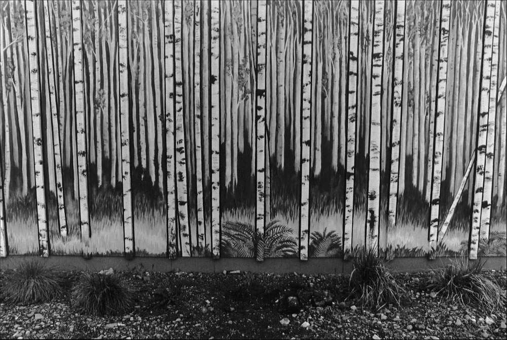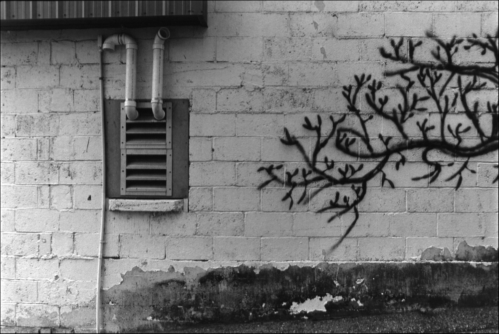 While wandering through towns from British Columbia to Louisiana, I find myself captivated by trees. We take this living plant and carve, prune and decorate it. We also take the surface of an exterior wall and imagine the tree upon it.
