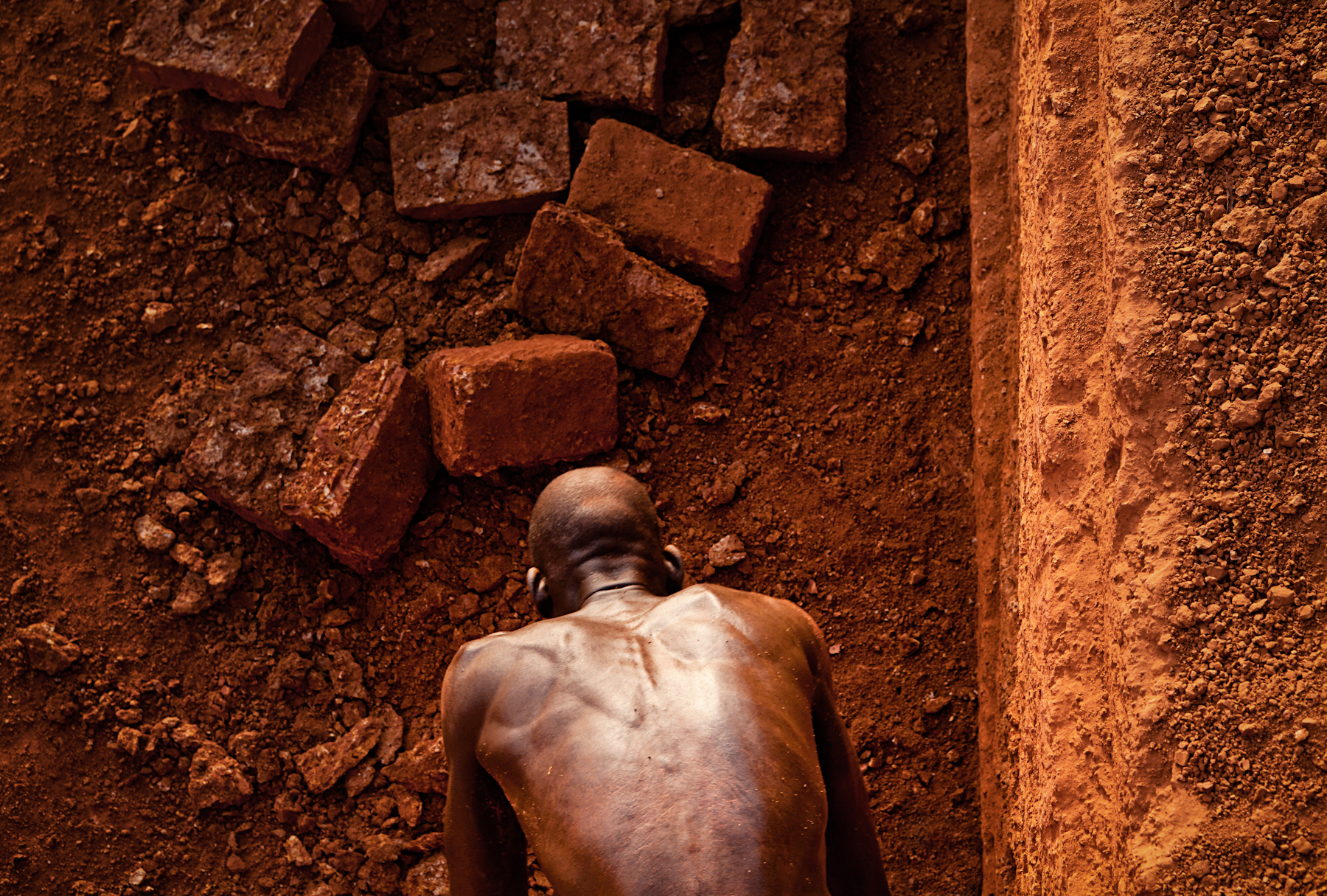 Tognarelli says the images "hover between performance art and land art as workers carve a bounty from the land…The workers and brick cubes move indiscriminately across the landscape forming temporary installations against a backdrop of rich earthen hues."