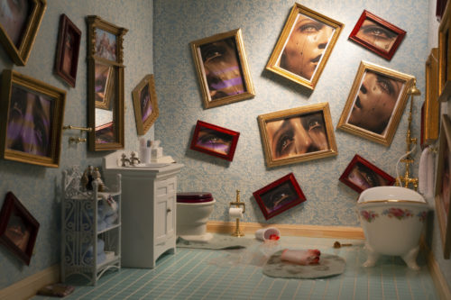 Spanning sculpture, assemblage, and photography, Kendall Pestana’s is an ongoing photographic series of constructed domestic spaces and internal landscapes that consider psychological space and the ways in which the body houses trauma. A response to the prevalence of American rape culture as well as recent backsliding of women’s rights, House On Fire is a deeply personal and visceral testament to feminine resilience. Utilizing the male-dominated visual language of surrealism in conjunction with the gendered implications of craft arts and domesticity, this ongoing body of work is a defiant reclamation of the home as an exploration of bodily space and autonomy through the lenses of gendered violence, illness and objectification.