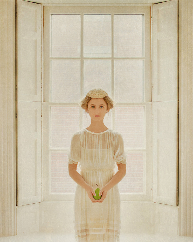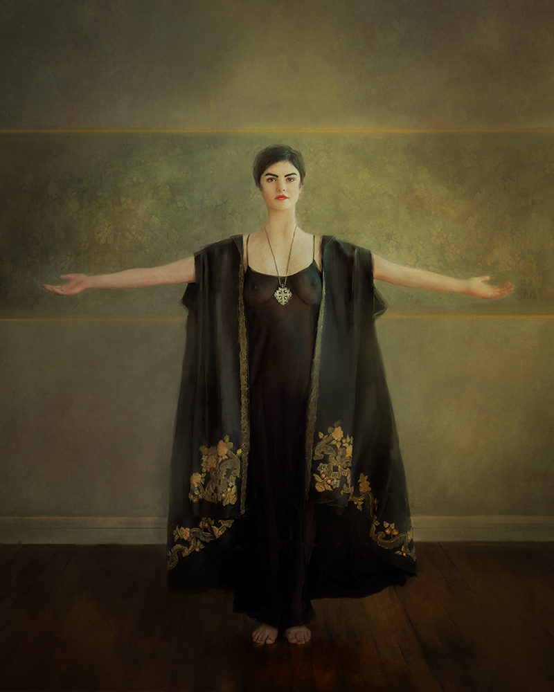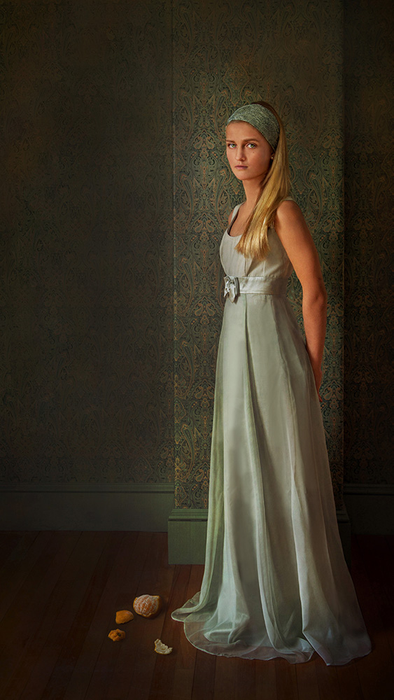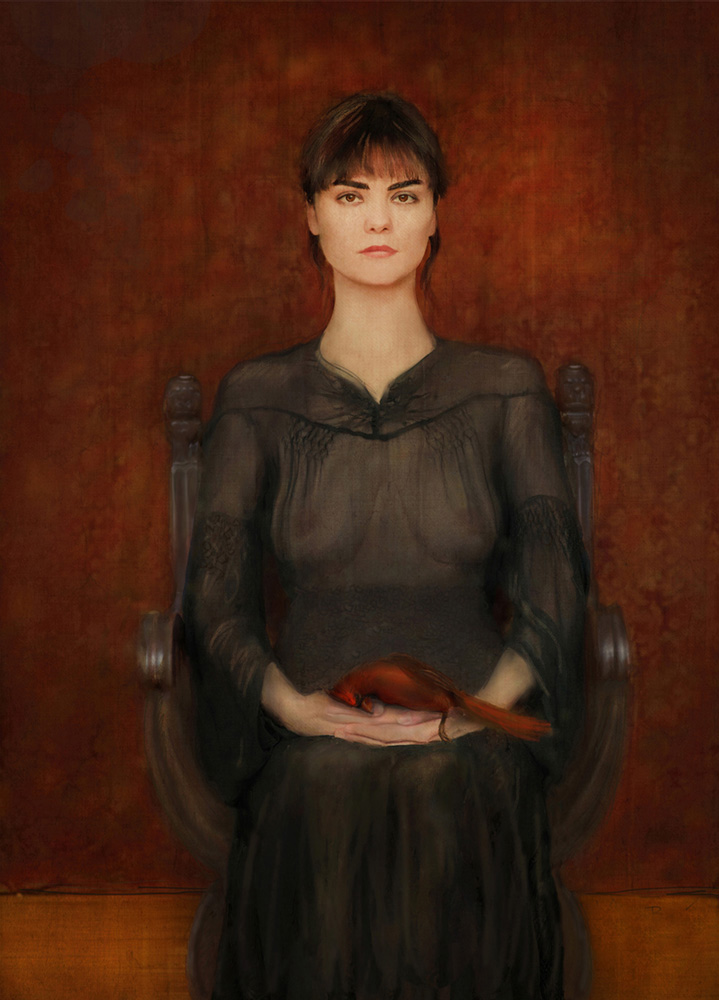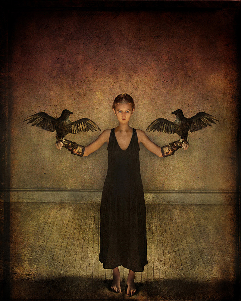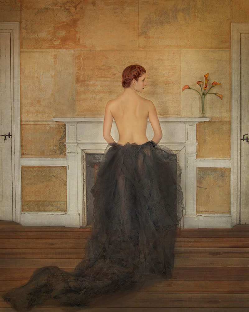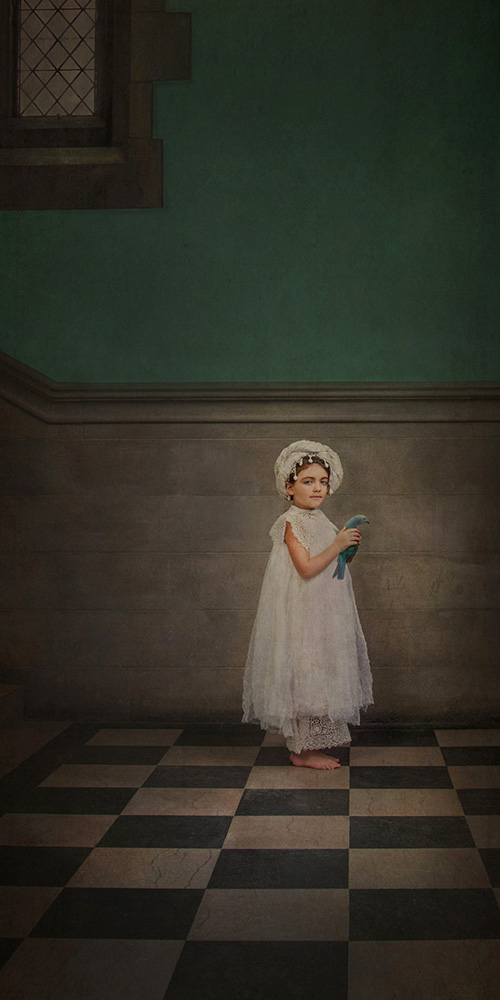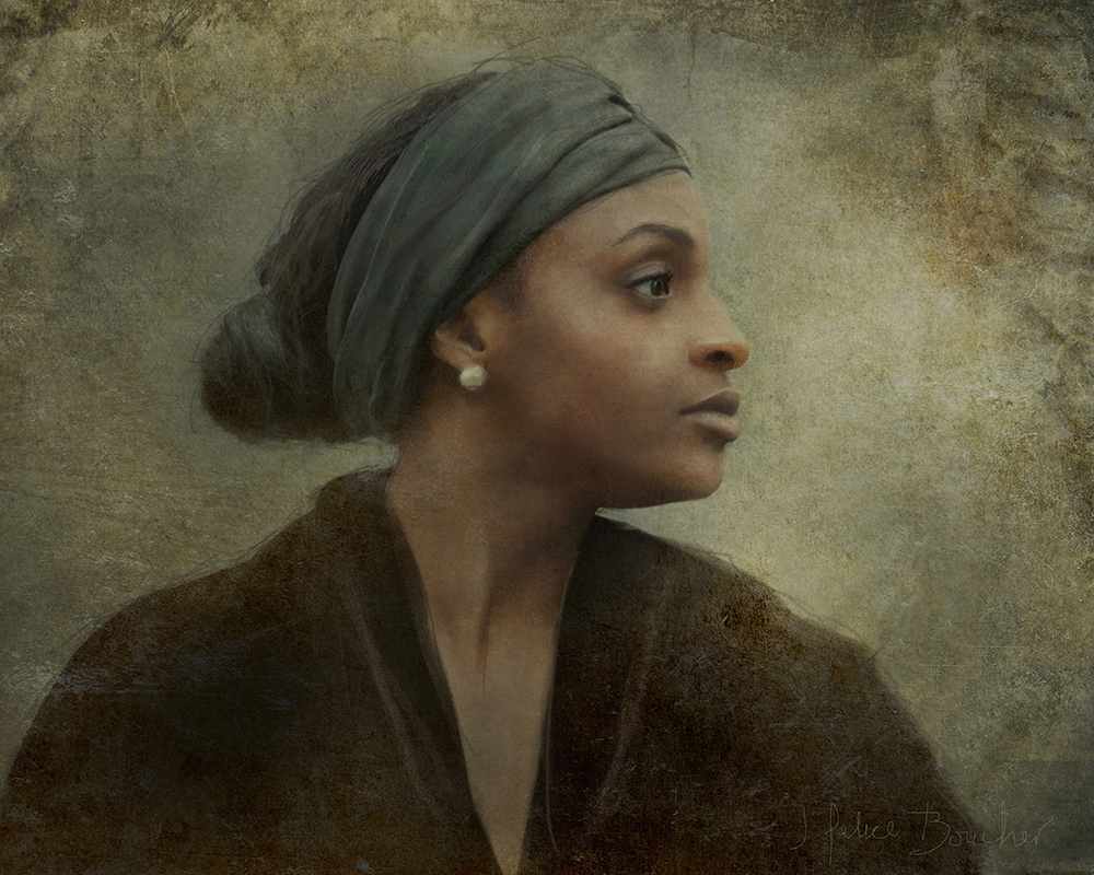 The next body of work depicted in the slide show here are from “Deified.” These are my most recent work and are images created from a hodgepodge of interests; my love of light, design, graphics, faces, painting, etc. So created each image after being moved for different reasons; by the beautiful face of teller at a bank and asked her if she would model for me (Goddess), and then I ended up photographing her sister (Blue Scarf), or loving the wall paper made up of maps in an old sea captain’s house in Harpswell, Maine (The Map Room), or loving the profile of an amazing waitress I met at a restaurant (Artist’s Muse), or the grace of my son’s friends daughter (The Quiet Girl ), or the mysteriously beautiful woman who was the girlfriend of my neighbor (Cardinal Sin), or the quiet observing personality of my granddaughter (Blue Bird). So each time moved by something, somewhere, someone.