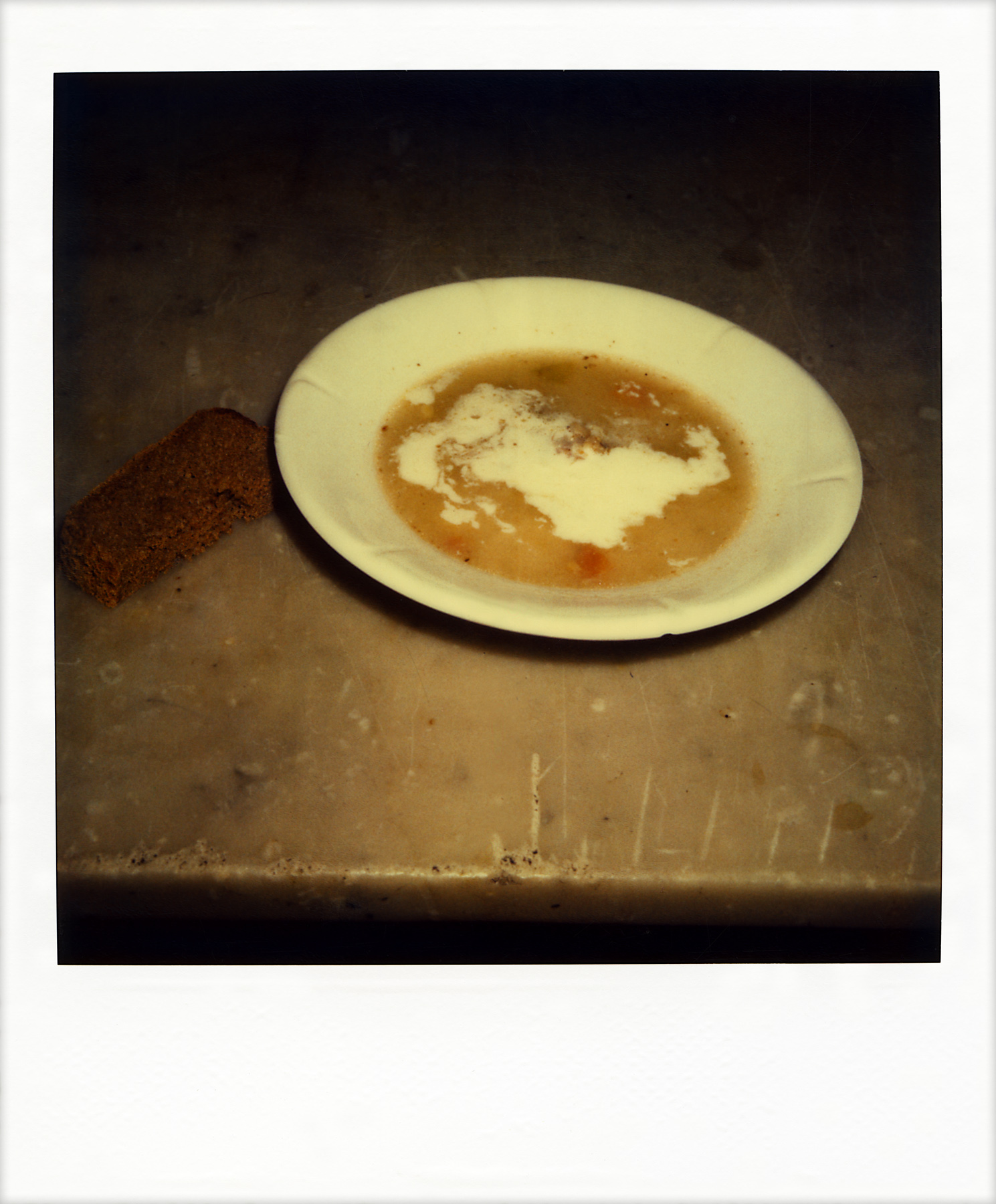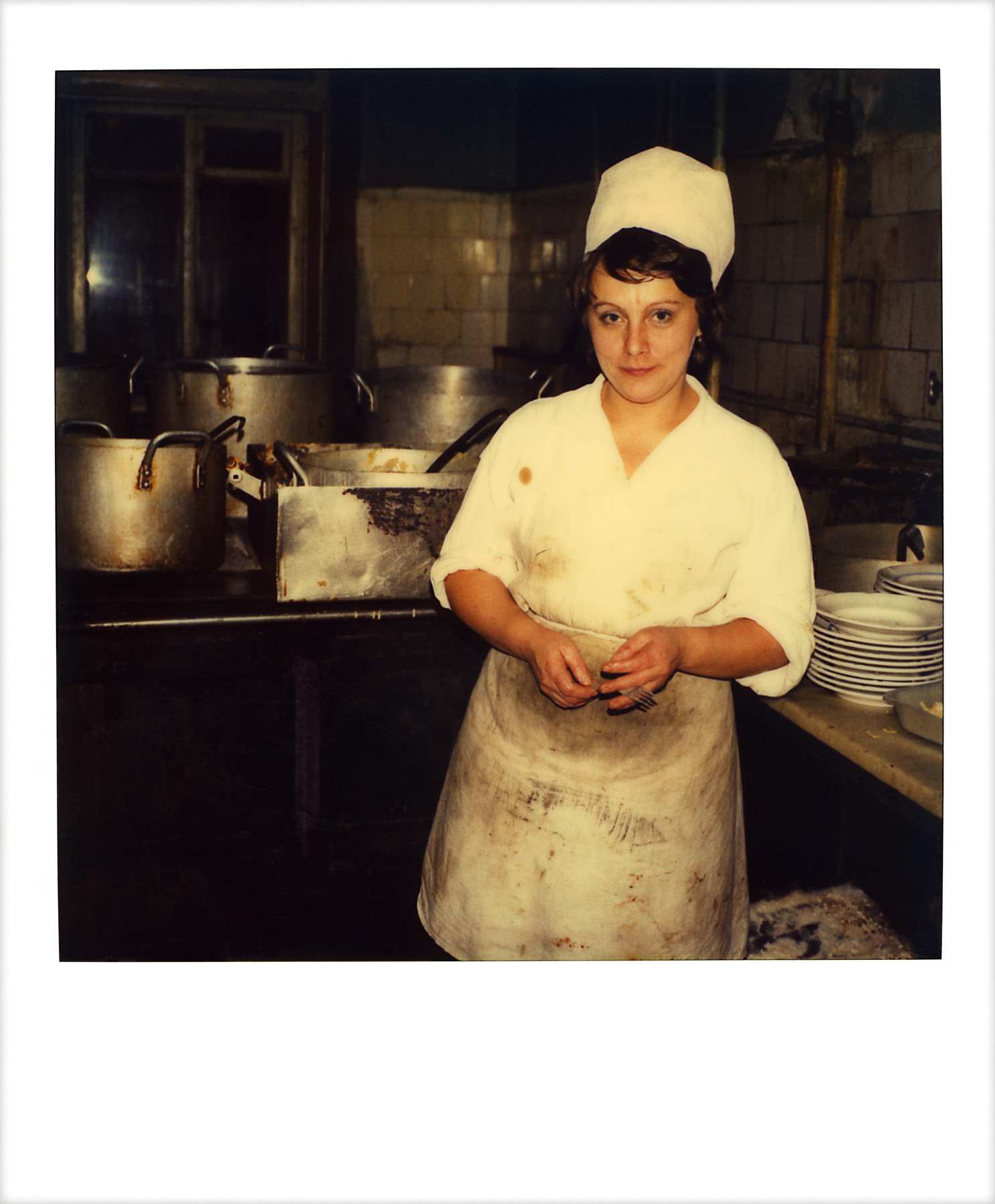 " At this point, I felt I had two choices; to abandon the cake and run, or to impose order on the situation. Without a word of Estonian or Russian, the unique character of Polaroid photography served as my language for convincing an apprehensive waitress to pose for a photograph. This was perceived as our arrangement and the commotion evaporated."