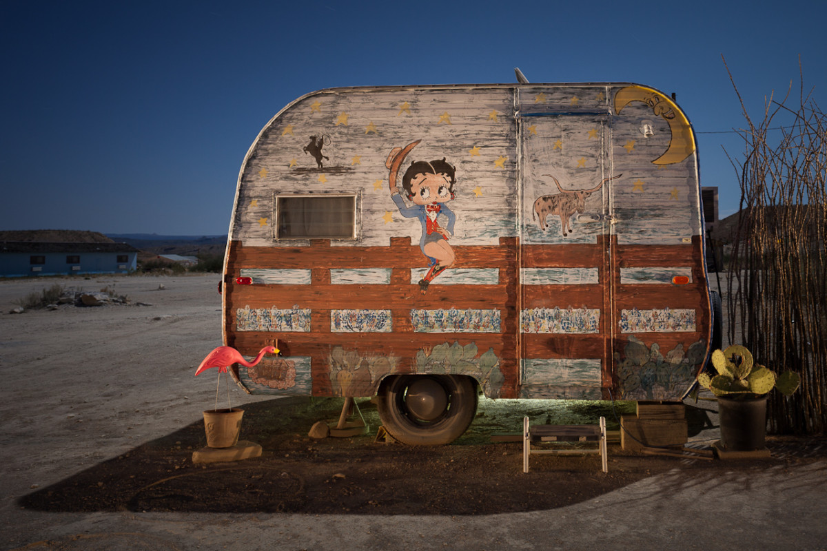 He adds that in the desert “the evidence of humanity’s tenuous existence there is slowly absorbed back into the Earth, and I’ve long been compelled to photograph it while it lasts. The night provides cover for my photographic explorations, cover from the blistering heat and the hard light of the midday sun."