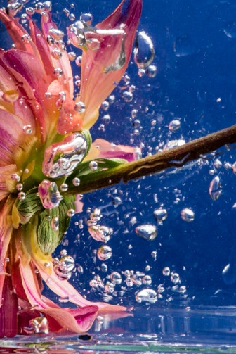 Judith Monteferrante says, “When I plunge a blossom into a pool of water, the elegant flower expresses its stalwart agility under water. By photographing the flower, I can share my appreciation for beauty in nature, the purity of light and its reflections, as well as refine the viewers’ eyes to see more simply.”