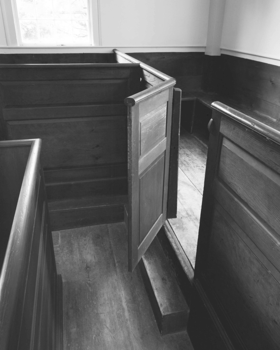 “I approach meetinghouses in much the same way an artist who works with the human form approaches a model,” Wainwright says. “It is not important what the person’s name is. Rather, the artist sees in the model a quality that can, when properly posed and lit, yield a piece of art. These meetinghouses are my “models” for making art, and my photographs reflect my emotional response to them–my physical location when I made each photograph is not of primary importance.”
