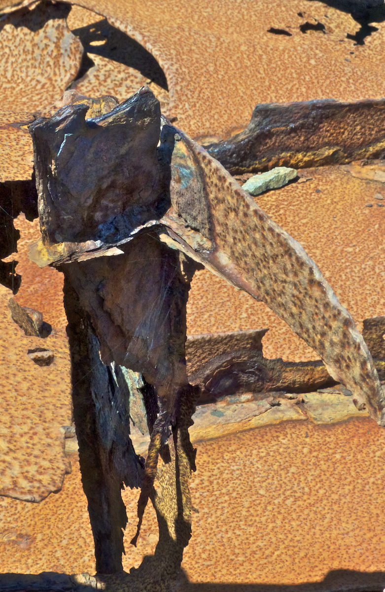 “In unexpected places I discover and photograph fantastic faces, lyrical dancers, cartoon characters, archetypal figures and sometimes surreal or demonic subjects, “ says Post. “These appearances are often like Rorchach imagery with multiple interpretations.” She adds, “By photographing my interpretations of Anima Mundi, I hope to encourage others to see more soulfully and become more aware that spirit permeates everything.”