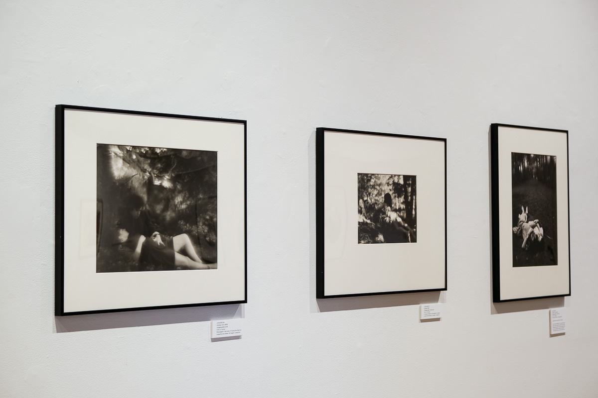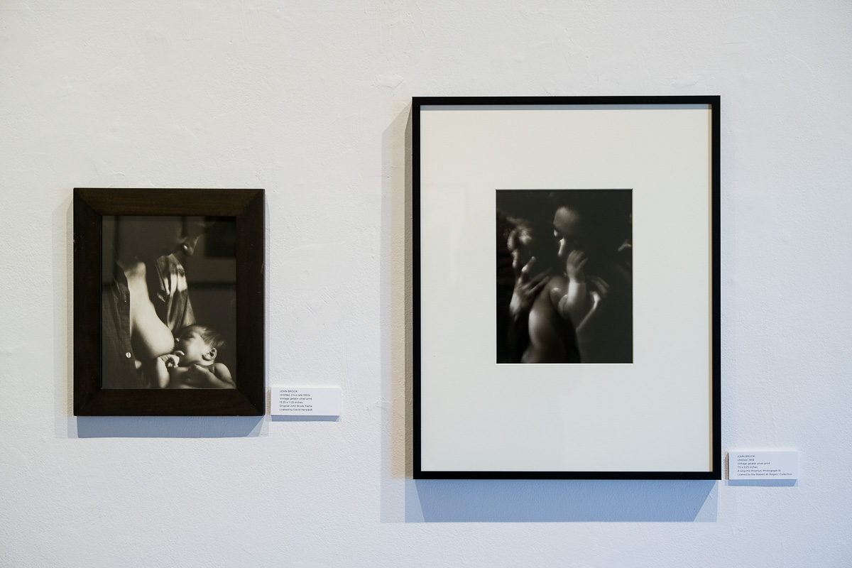 Brook’s works, in both subject matter and style, are also closely aligned with the Pictorialist movement of the turn of the twentieth century. Pictorialists sought to establish photography as a fine art through carefully chosen and idealized subject matter, soft focus, and low tonal gradation. A pictorial landscape was a romantic pastoral escape, and figures symbolized ideals of beauty. Brook’s veneration of the human form closely aligns him with pictorial photography, and he is perhaps most known for his soft-focused representations of the nude. Works appearing in A Long the Riverrun include male and female figures, both alone and together, posed in sun-dappled natural settings. Brook unabashedly sought the beautiful in his work, describing a process where he “found beautiful people, places, and moments in a world that was getting uglier every day.”