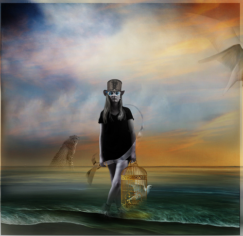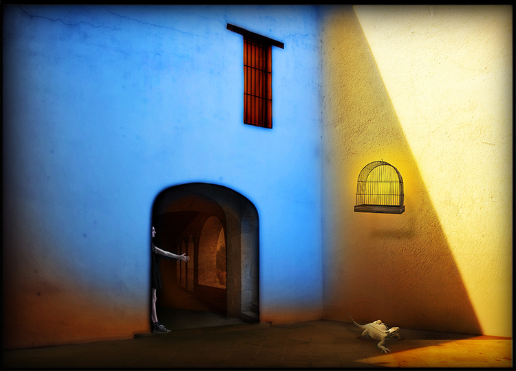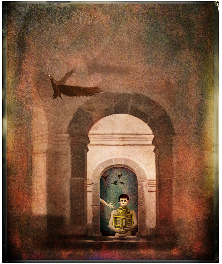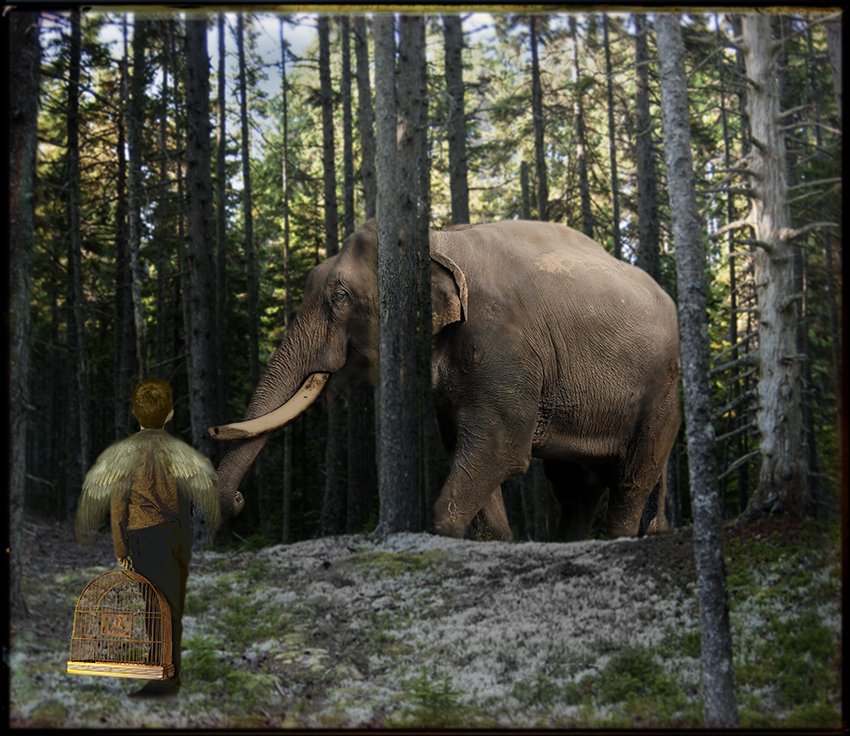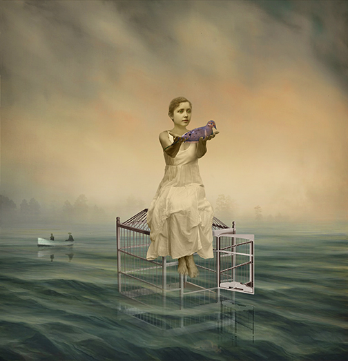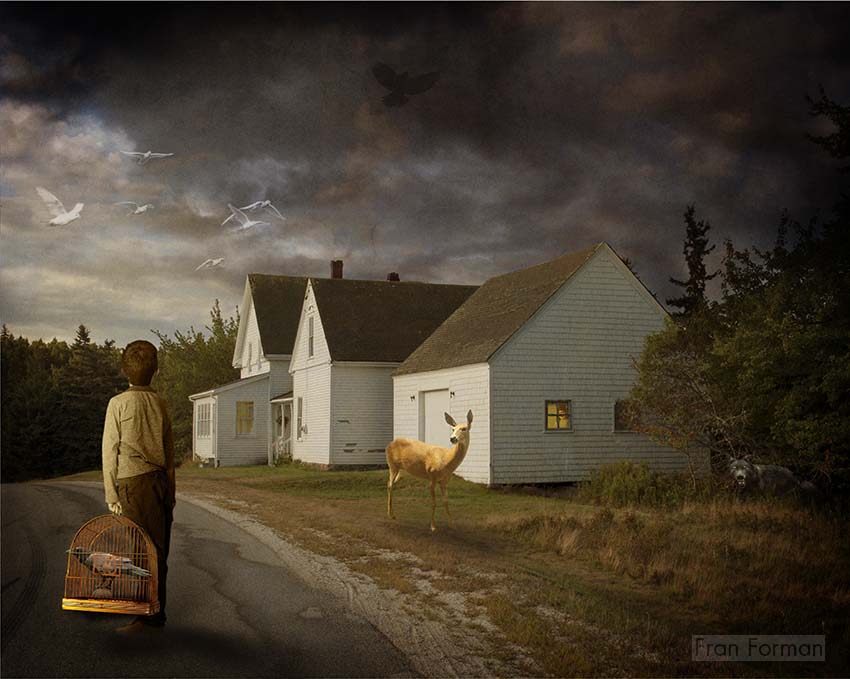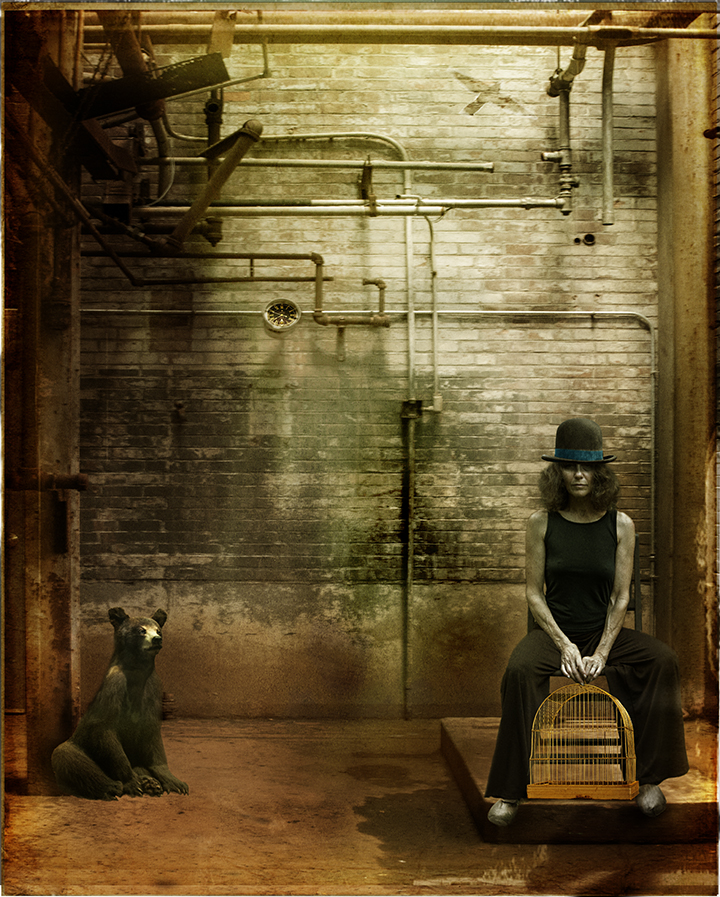 The Executive Director of the Griffin Museum of photography Paula Tognarelli is the curator of the exhibition “Return to the Clouds.” She says, “We are excited to exhibit Fran Forman once again as her last exhibition with us was in 2008.” Tognarelli says more about the exhibition. “Much of what Fran Forman speaks to in her artwork is humankind’s relationship to the past, to history and myth, our animal brethren and the concept of hope. The bird-cage shows itself in many of Forman’s images due to her influence by the surrealist artist, René Magritte. The bird is a reoccurring character in her narratives that speak to freedom, escape and the natural world.”