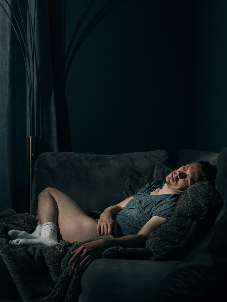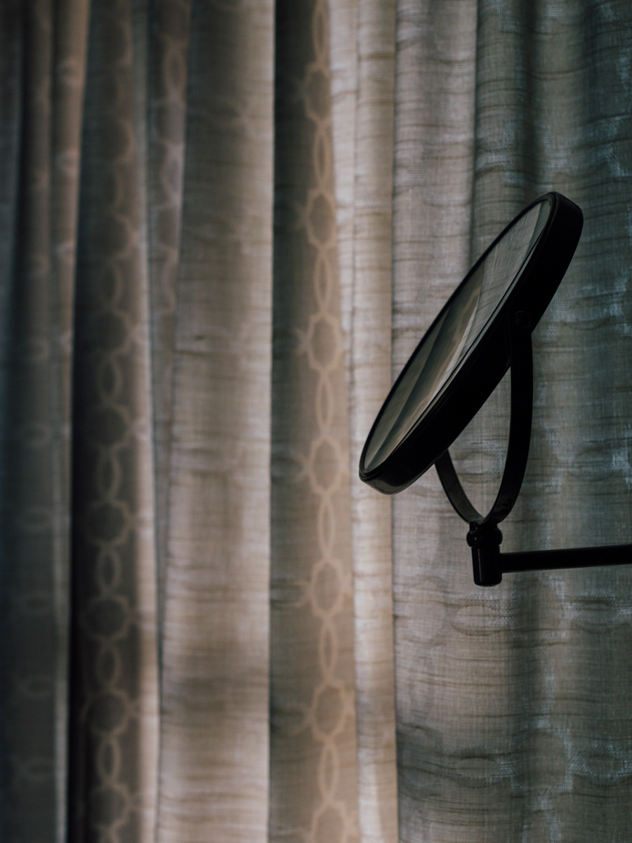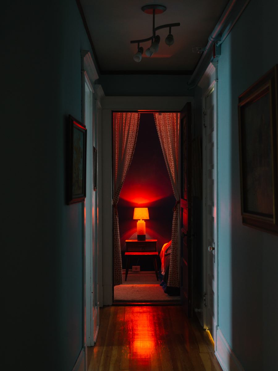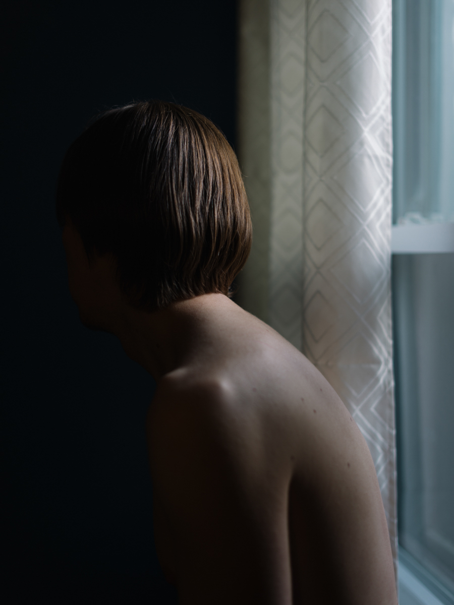 My photographs employ themes of tension, voyeurism, and transition to represent interpretation of self. I construct images that balance organic intimacy and cinematic theatricality by implementing symbolism, color theory, and seductive lighting. Using a directorial approach and a single subject allows me to create an environment that transforms viewer into voyeur. The singular vantage point and lack of reciprocal gaze invites one to silently observe an unfolding narrative. However, the personal account is never fully described and the viewer must bring their own history, biases, and prejudices to interpret the imagery. Transition within this work is highlighted through the notions of gender and time. Though the viewer is privy to feminine interventions placed upon the male figure, faint physical changes sequentially manifest in the subject. Rigid musculature and posture is overcome by delicate and poetic gestures; the manicuring of body also becomes a form of sublimation. The ambient photographs, which signify fleeting moments, mark points of personal evolution. Emphasis is placed on the threshold between public and private, as well as the implied or literal mirror embodying introspection. Life comprises moments navigating both the literal and psychological space; my intention is to render that dichotomy.