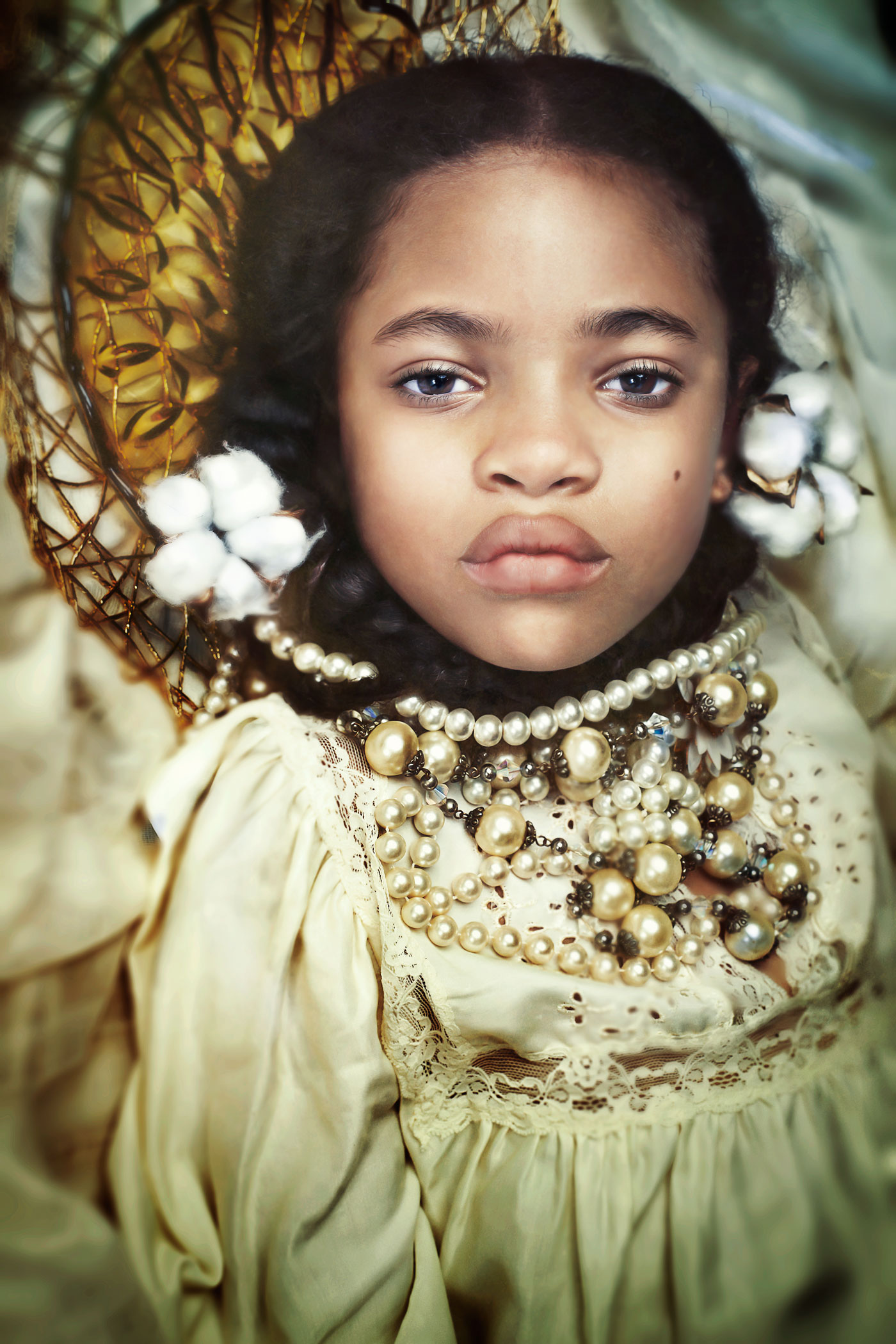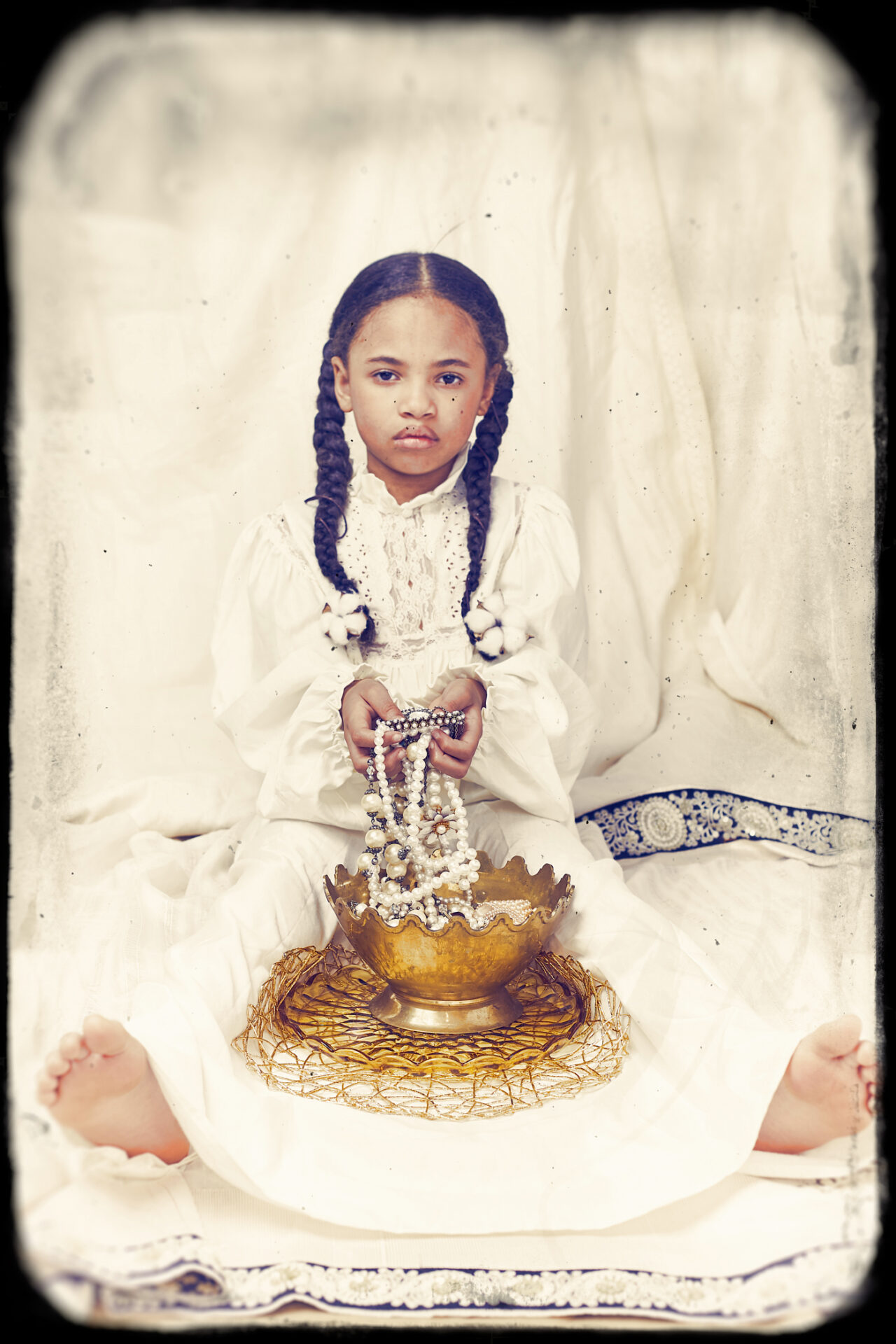 I am connecting to my own personal history as a southern girl, taught nothing of her history. Longing to understand my place as a daughter of the Diaspora, my journey to connecting to home has been led by me paying attention to energy, signs, and intuition as ancestral guidance to create works that explore race, history, spirit, memory and material culture as a means of connecting to my past. This connection is one the south has not taught its children. As a child of the south, I grew up with a void. The conversations around my artwork strive to explore these rituals, material artifacts as a means of channeling our history. The children in my works act as the conjurers. They welcome with their innocence and purity, a spirit open to ancestors and a rewriting of their history.