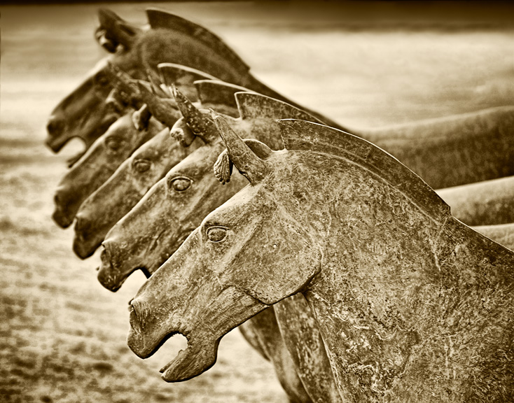 “Much of my work includes images that are converted from color to monochrome….the use of sepia tones for this exhibition seemed to fit best with the nations visited and the subject matter of the images. This exhibition includes images acquired in China and Tibet in 2007. Though China has, in recent years, emerged in many ways into modernity, I chose to focus on images that reminded me of that nation’s rich past.”
